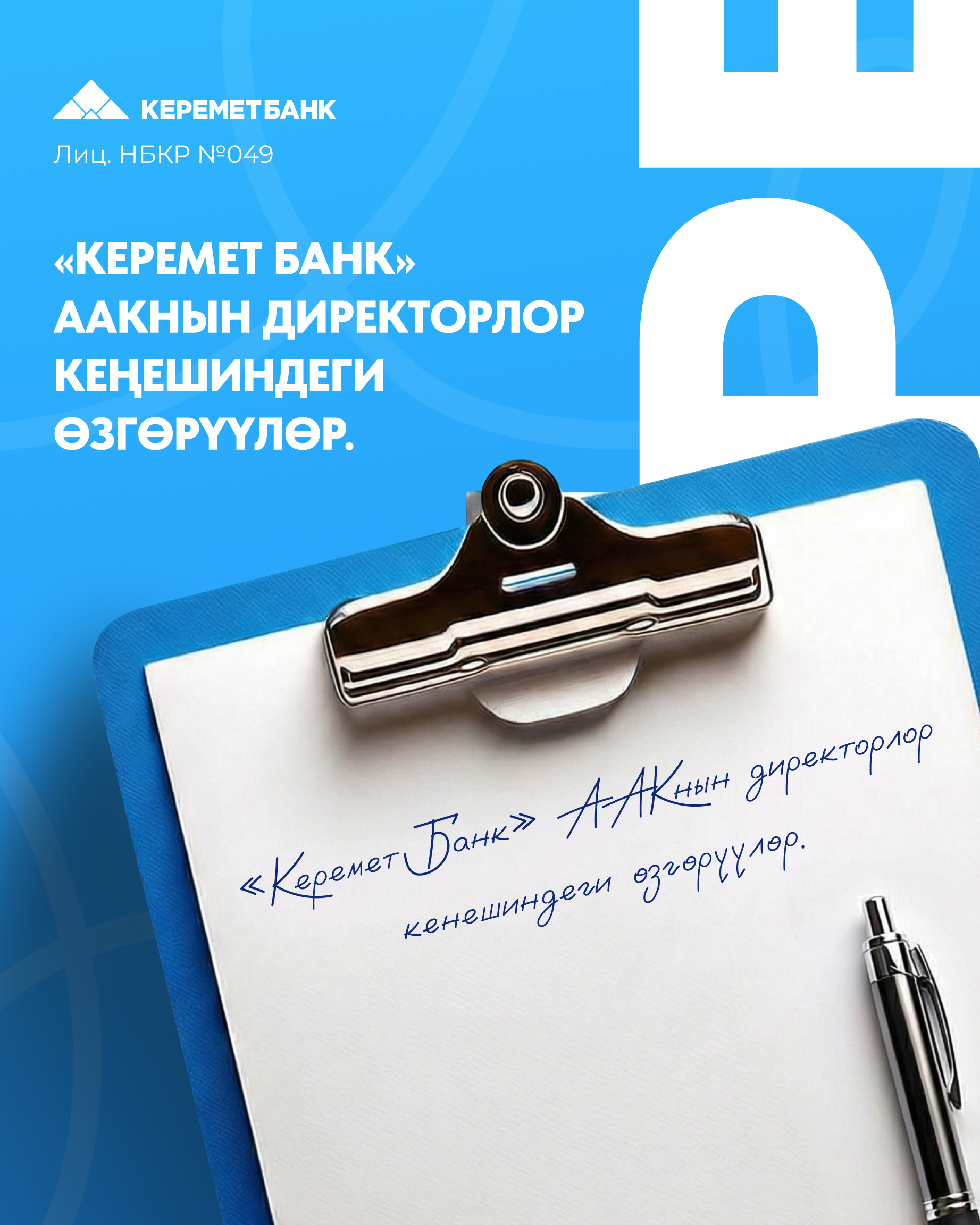 Керемет Банк" ААКнын директорлор кеңешиндеги өзгөрүүлөр.