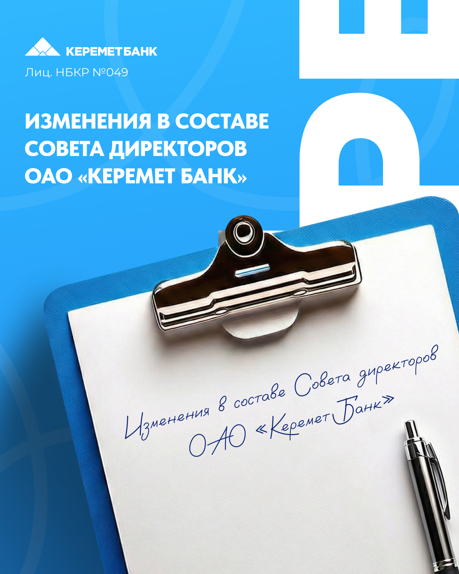 Изменения в составе Совета директоров ОАО «Керемет Банк».
